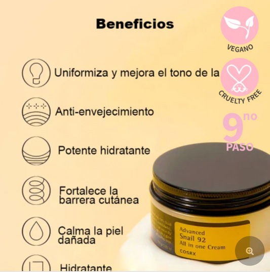 CREMA TODO EN UNO CON BABA DE CARACOL 92 AVANZADA COSRX - Crema hidratante con 92% de mucina de caracol (100 mg)