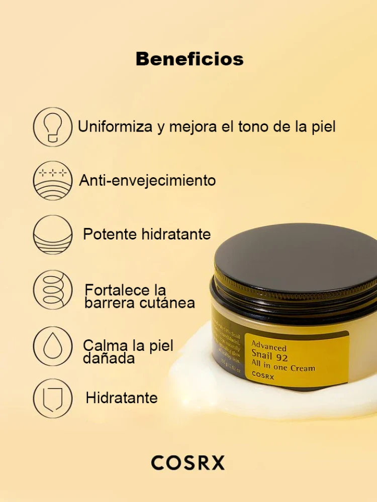 CREMA TODO EN UNO CON BABA DE CARACOL 92 AVANZADA COSRX - Crema hidratante con 92% de mucina de caracol (100 mg)